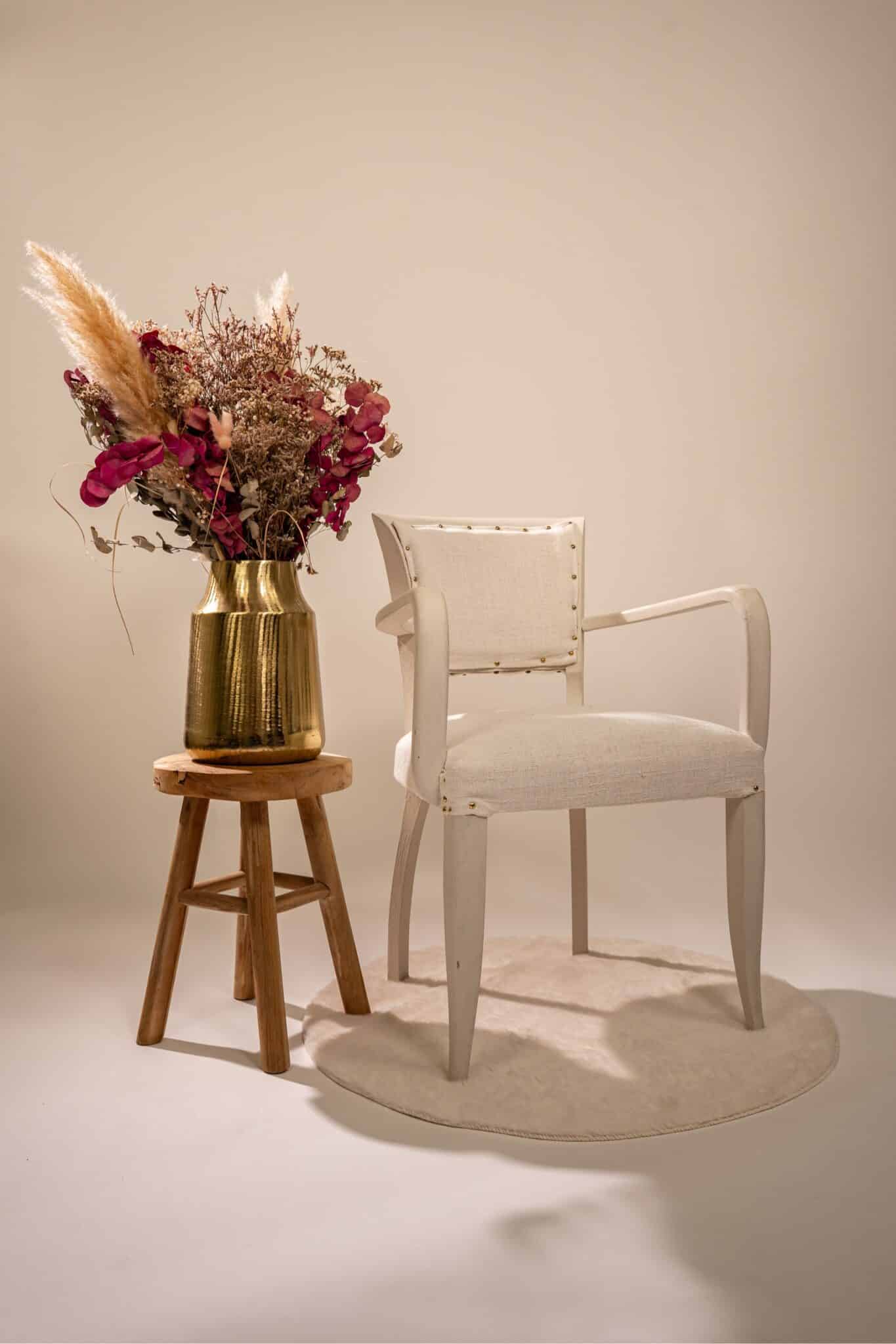 Nous réalisons des prises de vue en studio à Rouen, en proposant une installation soignée qui associe mobilier design et éléments décoratifs subtils. L’espace se compose d’une chaise blanche tapissée, d’un tabouret en bois naturel, et d’un vase doré contenant des fleurs séchées, le tout posé sur un tapis rond et pelucheux. Cet ensemble minimaliste est mis en lumière par un éclairage doux, spécialement conçu pour garantir un rendu harmonieux et professionnel. En tant que prestataire en production vidéo et photo, nous maîtrisons l’art de la scénographie et de la captation en studio, afin de créer un environnement propice à des prises de vues efficaces et esthétiques. Notre savoir-faire permet d’adapter la décoration et l’éclairage selon les besoins spécifiques de chaque projet, qu’il s’agisse de portraits, de produits ou de contenus promotionnels.